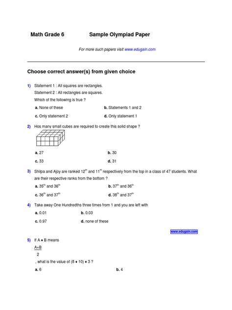 Download MATHS OLYMPIAD GRADE 6 PAST PAPERS Doc